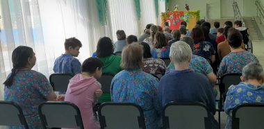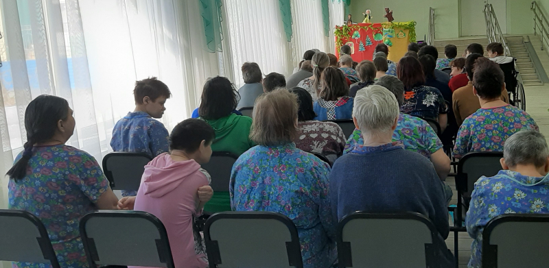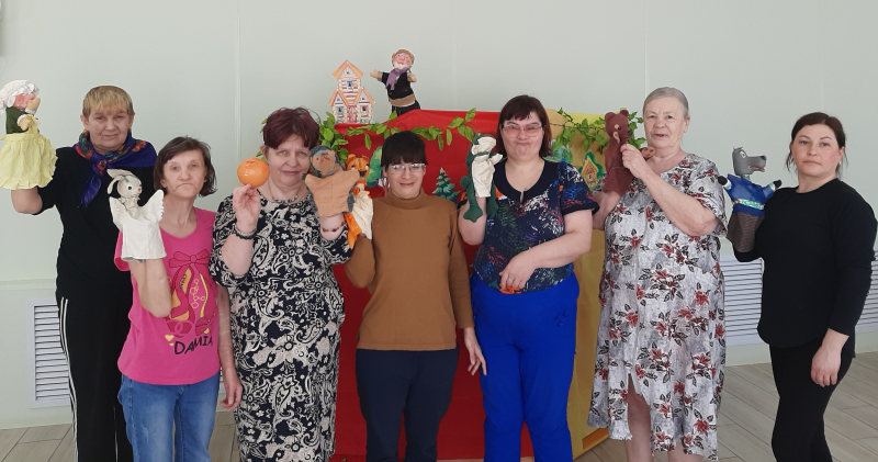 Творческая активность дарит людям самое важное — жизненные силы и желание жить. Для человека, занимающегося творчеством, не существует возраста. Театр позволяет получить не только эстетическое удовольствие, но и душевный отдых, который так необходим каждому человеку. В АСУСО «Такмыкском дом-интернате» специалисты по социальной работе совместно с получателями социальных услуг поставили театрализованное кукольное представление сказок «Теремок» и «Колобок». Зрители с удовольствием, с горящими от счастья глазами, внимательно слушали, смотрели спектакль, следили за судьбой героев, смеялись и переживали вместе с ними . Красочные, нарядные куклы, их нежные, добрые голоса окунули всех в мир сказки. Представление доставило огромное удовольствие всем и зрителям и артистам.