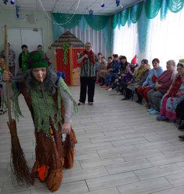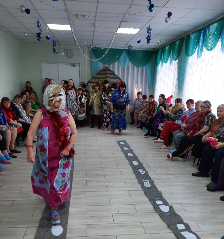 Получатели социальных услуг с удовольствием принимали участие в разнообразных конкурсах, читали стихи, отгадывали загадки, водили хоровод вокруг елки, а также сделали памятные фотографии с героями представления. Завершением праздника стало появление Деда Мороза и Снегурочки, которые вручили всем сладкие подарки.