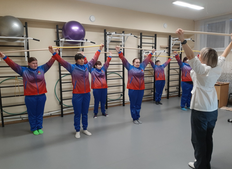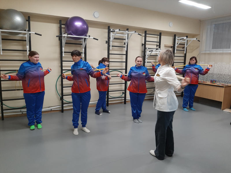 Сегодня в АСУСО «Такмыкском доме-интернате» для получателей социальных услуг, был проведен физкультурно-оздоровительный час по теме «Правильная осанка - залог здоровья». Инструктор ЛФК Кускова Анна Геннадьевна рассказала о строении скелета человека, провела практические упражнения и разминки для укрепления мышечного корсета и сохранение красивой осанки. Правильное положение тела входит в привычку путем постоянного и многократного его повторения. Вот почему полезно включать в распорядок дня ежедневную гимнастику для осанки. Это поможет создать мотивацию к ежедневной заботе о позвоночнике в любом, даже в пожилом возрасте.