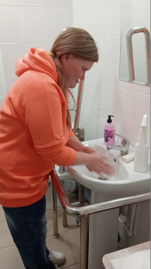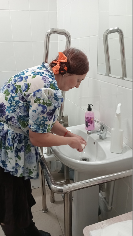 Присутствующим рассказали о том, что мытьё рук с мылом - очень эффективный способ профилактики, прежде всего диарейных, паразитарных и острых респираторных инфекций. Пренебрегая гигиеной рук, люди неосознанно ставят под серьёзную угрозу своё здоровье и благополучие окружающих. Получателям социальных услуг повторили правила мытья рук, закрепили знания о том, когда нужно мыть руки.