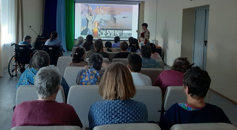 В доме-интернате для получателей социальных услуг состоялось памятное мероприятие «Колокола Чернобыля» посвящённое 40-летию со дня аварии на Чернобыльской АЭС. Центральной частью встречи стала видеопрезентация, которая помогла вспомнить трагические события 1986 года, отдать дань уважения ликвидаторам и обсудить уроки этой катастрофы. Презентация сопровождалась закадровым текстом, и фоновой музыкой, создававшей нужную эмоциональную атмосферу. После просмотра состоялась дискуссия. Получатели социальных услуг делились своими воспоминаниями о 1986 годе, задавали вопросы о деталях аварии, и её долгосрочных последствиях. Особо трогательным моментом стала минута молчания в память о погибших и умерших ликвидаторах.